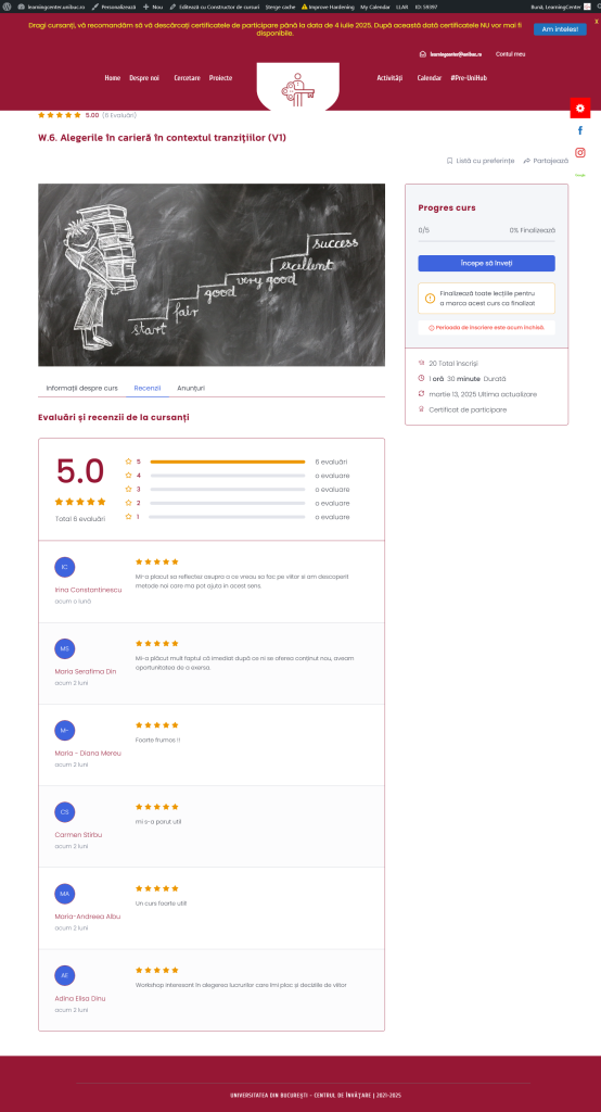 Atelierul „Alegerile în carieră în contextul tranzițiilor” își propune să sprijine participanții în înțelegerea procesului de luare a deciziilor și gestionarea schimbărilor din carieră.