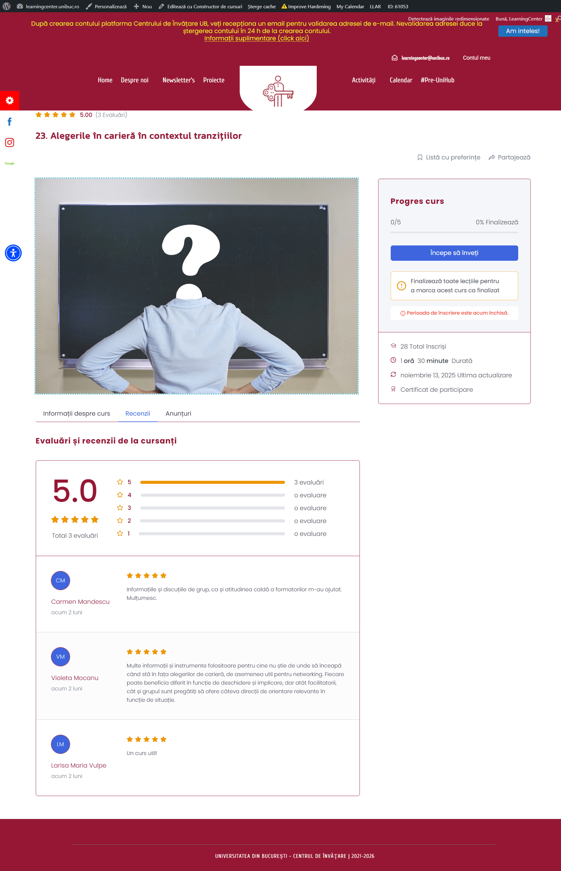 Atelierul își propune să sprijine participanții în înțelegerea procesului de luare a deciziilor și gestionarea schimbărilor din carieră.