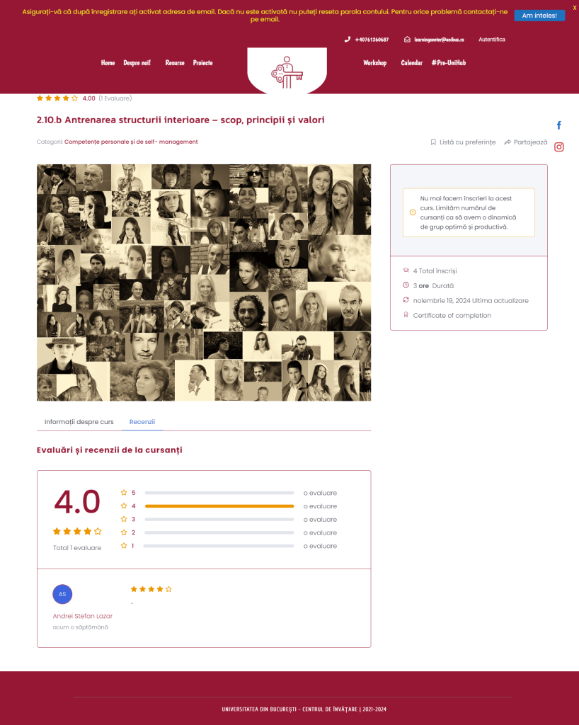 De asemenea, aduc in atentia studentilor explicatii privind modul in care putem formula un scop precum si importanta pe care o are depistarea si cresterea statutului nostru personal. Toate aceste elemente (scop, concept, principii, valori, statut) odata clarificate, ofera o harta a interioritatii noastre, de care este necesar sa tinem cont inainte de a demara un set de actiuni.