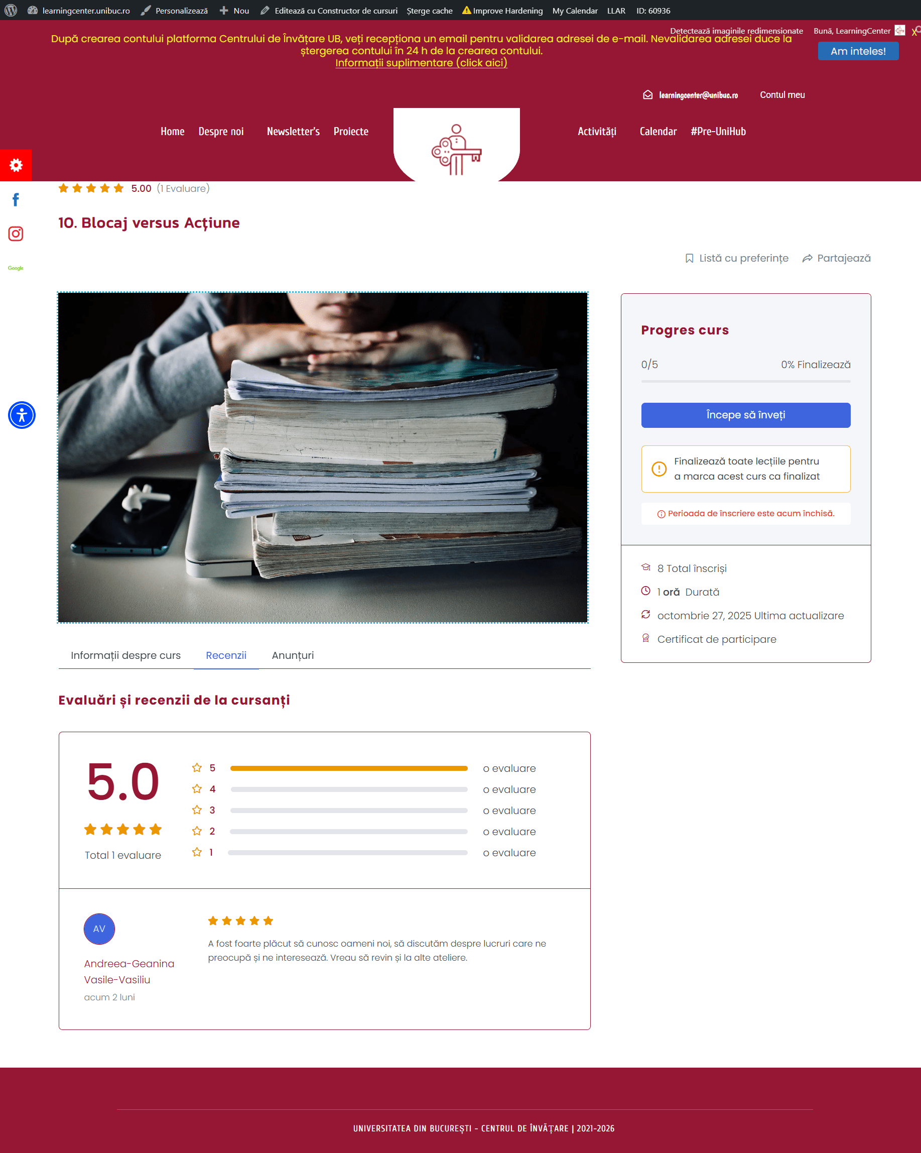 Atelierul oferă participanților instrumente practice pentru a recunoaște cauzele blocajelor în procesul de învățare și pentru a le transforma în acțiuni constructive. Activitățile propuse stimulează claritatea, inițiativa și capacitatea de a progresa chiar și în situații dificile.