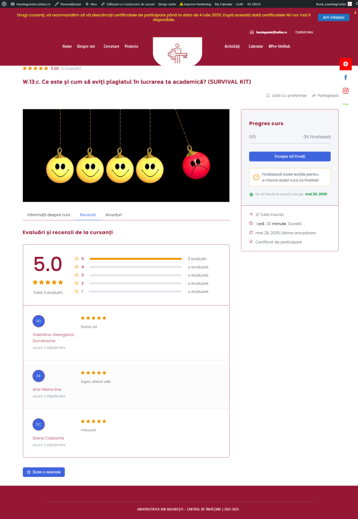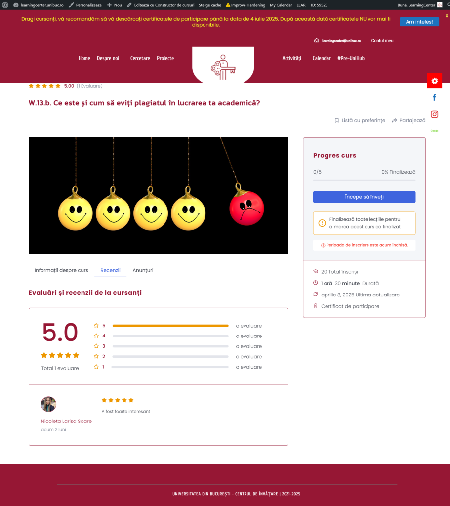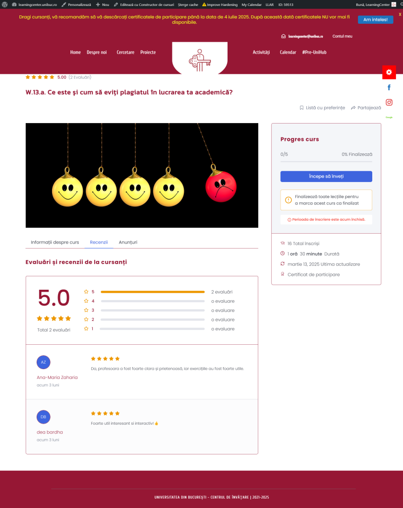 În cadrul Atelierului afli ce este plagiatul, cum îl poți evita dar și cum îți poți exprima propria voce într-o lucrare academică, rămânând în același timp în registrul științific.