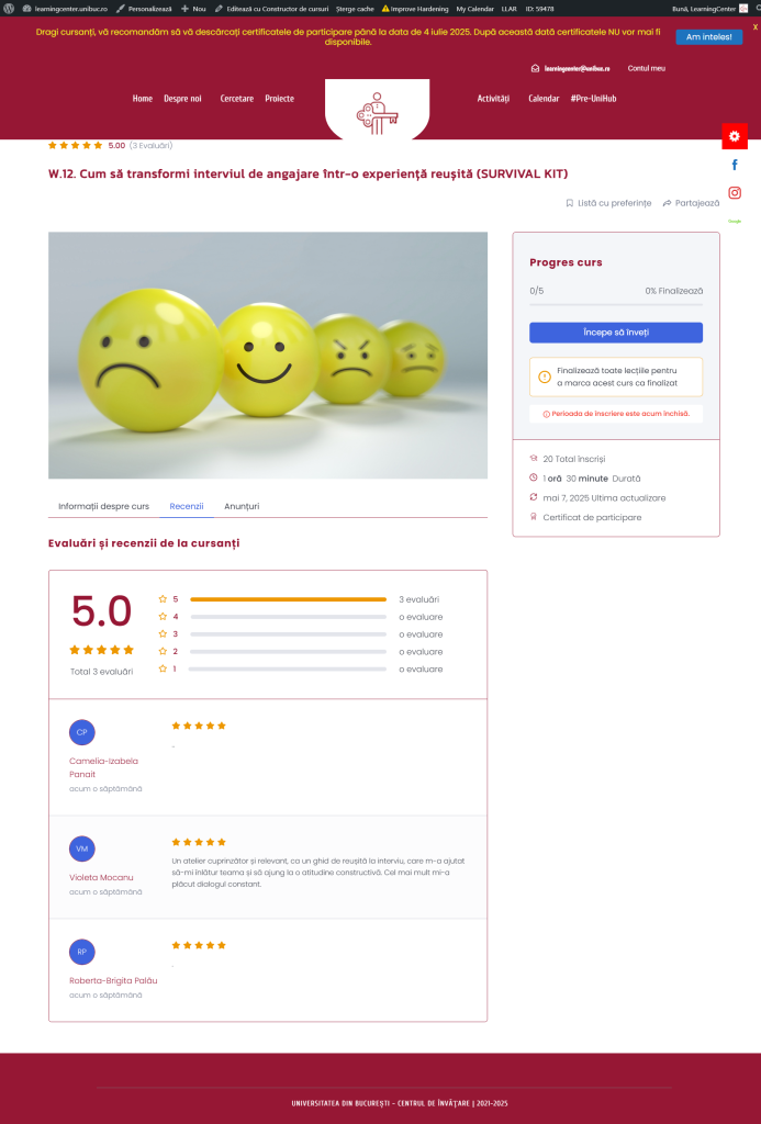 În cadrul acestui atelier vei descoperi mai multe despre cum să te pregătești cu succes pentru interviul de angajare și de ce acesta reprezintă un cadru în care fiecare parte, atât recruiterul, cât și candidatul, are puterea de a decide în mod egal.