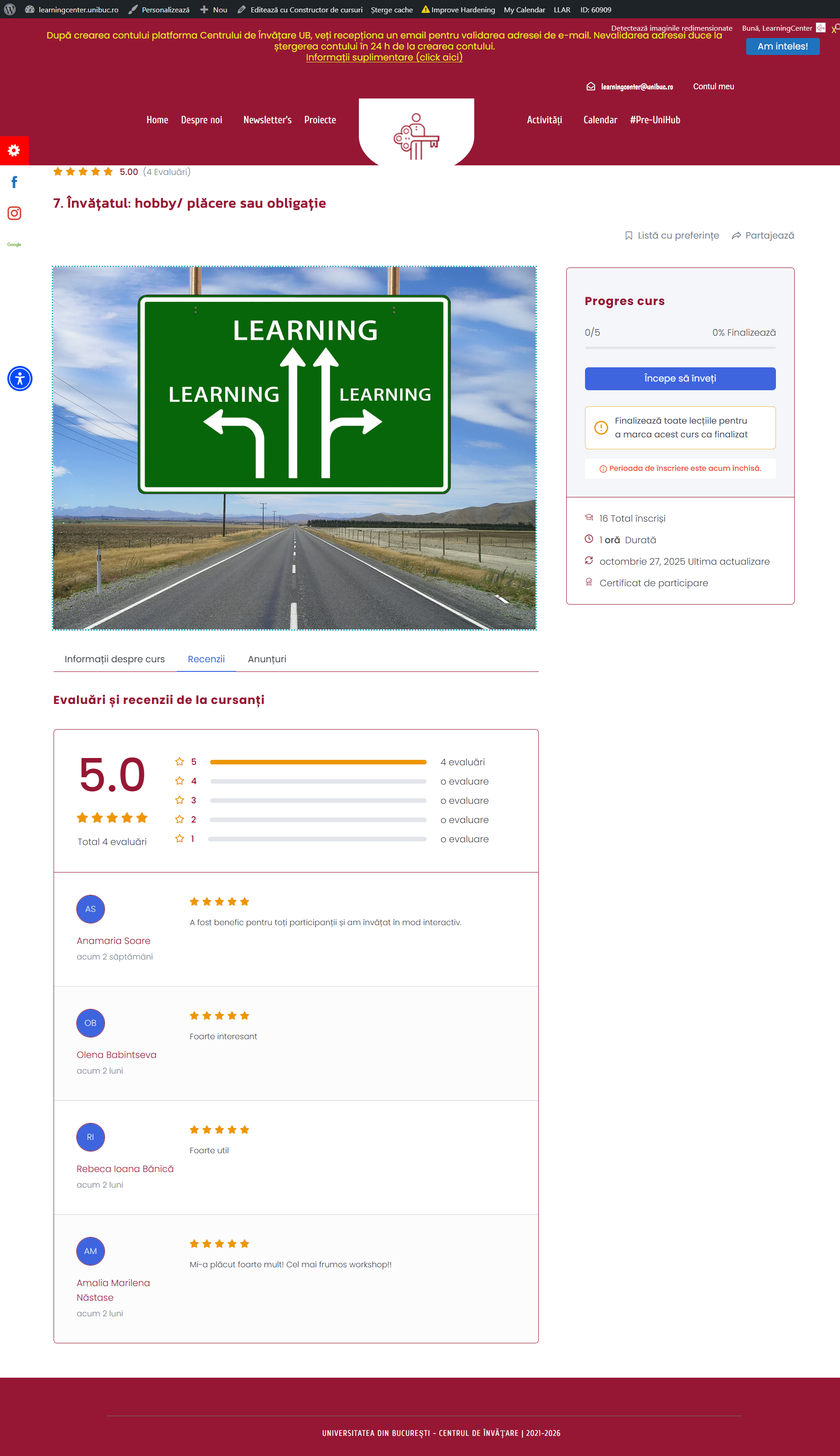 Atelierul explorează percepțiile diferite asupra învățării ca sursă de plăcere, curiozitate sau simplă obligație. Participanții vor analiza propriile motivații și vor descoperi cum pot transforma învățarea într-o activitate personală relevantă și satisfăcătoare.