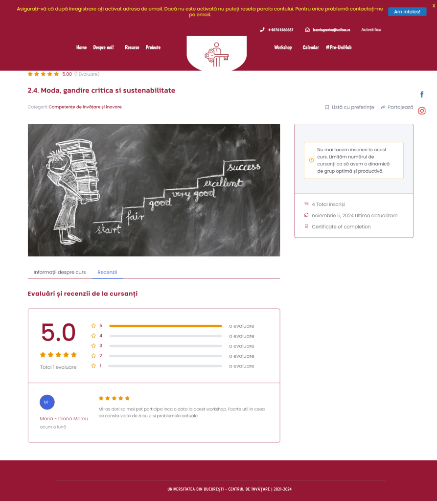 Atelierul promovează gândirea critică, analiza atentă a informațiilor și conștientizarea influenței valorilor personale în contextul sustenabilității. Fii dintre persoanele care fac cei mai importanți pași către un viitor mai bun, aliniat cu propria viziune de dezvoltare durabilă.