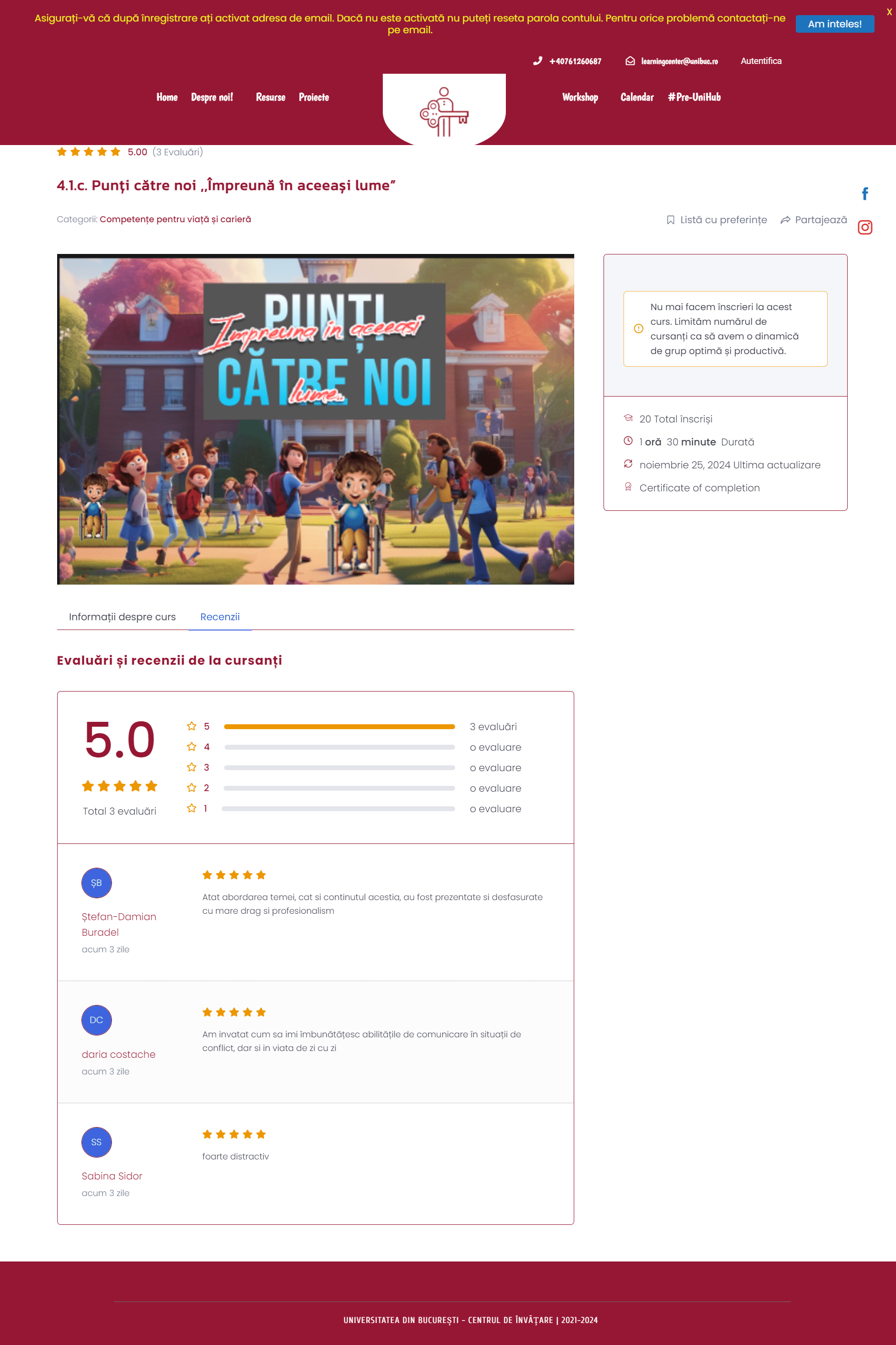 După crearea contului platforma Centrului de Învățare UB, veți recepționa un email pentru validarea adresei de e-mail. Nevalidarea adresei duce la ștergerea contului în 24 h de la crearea contului.