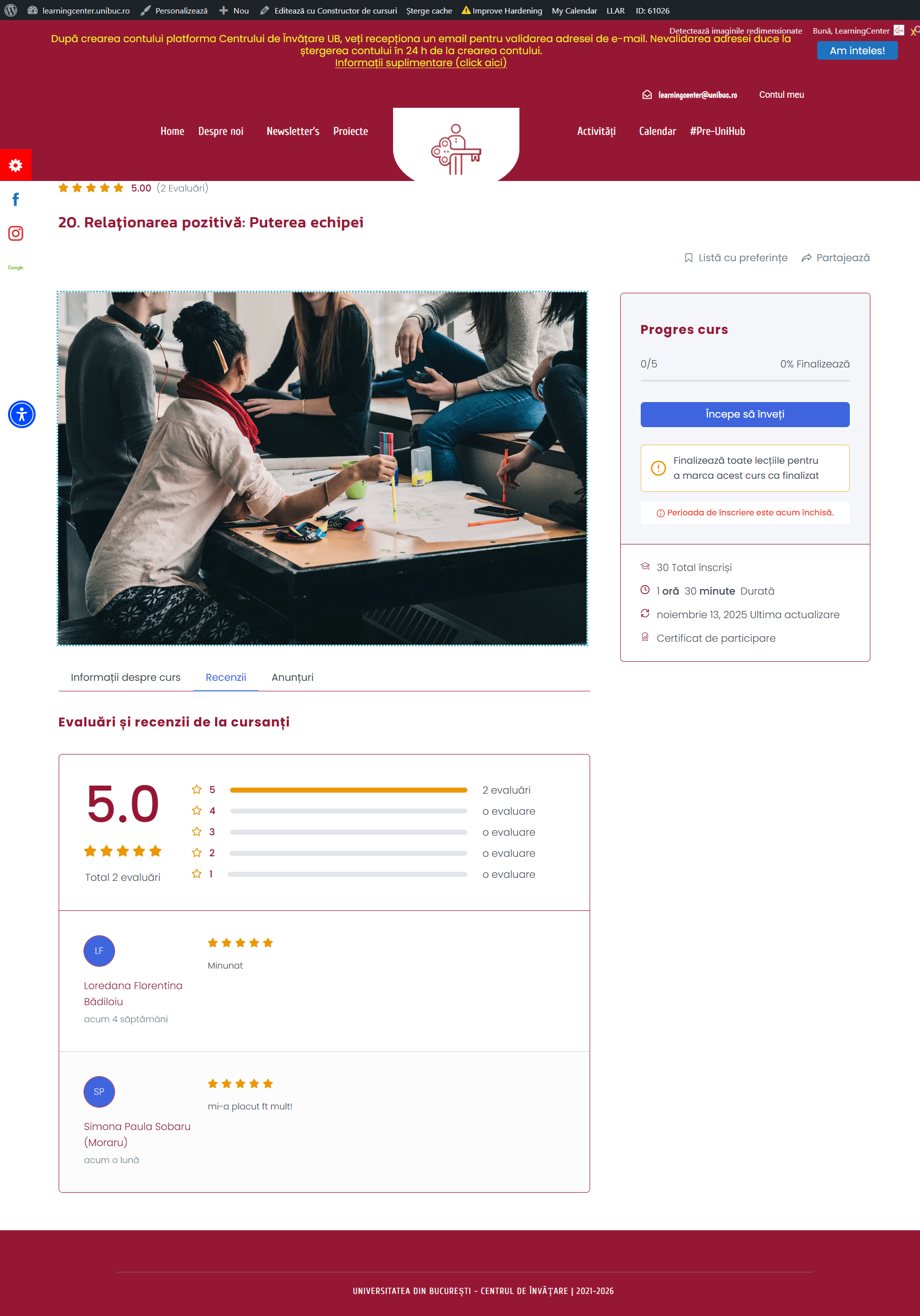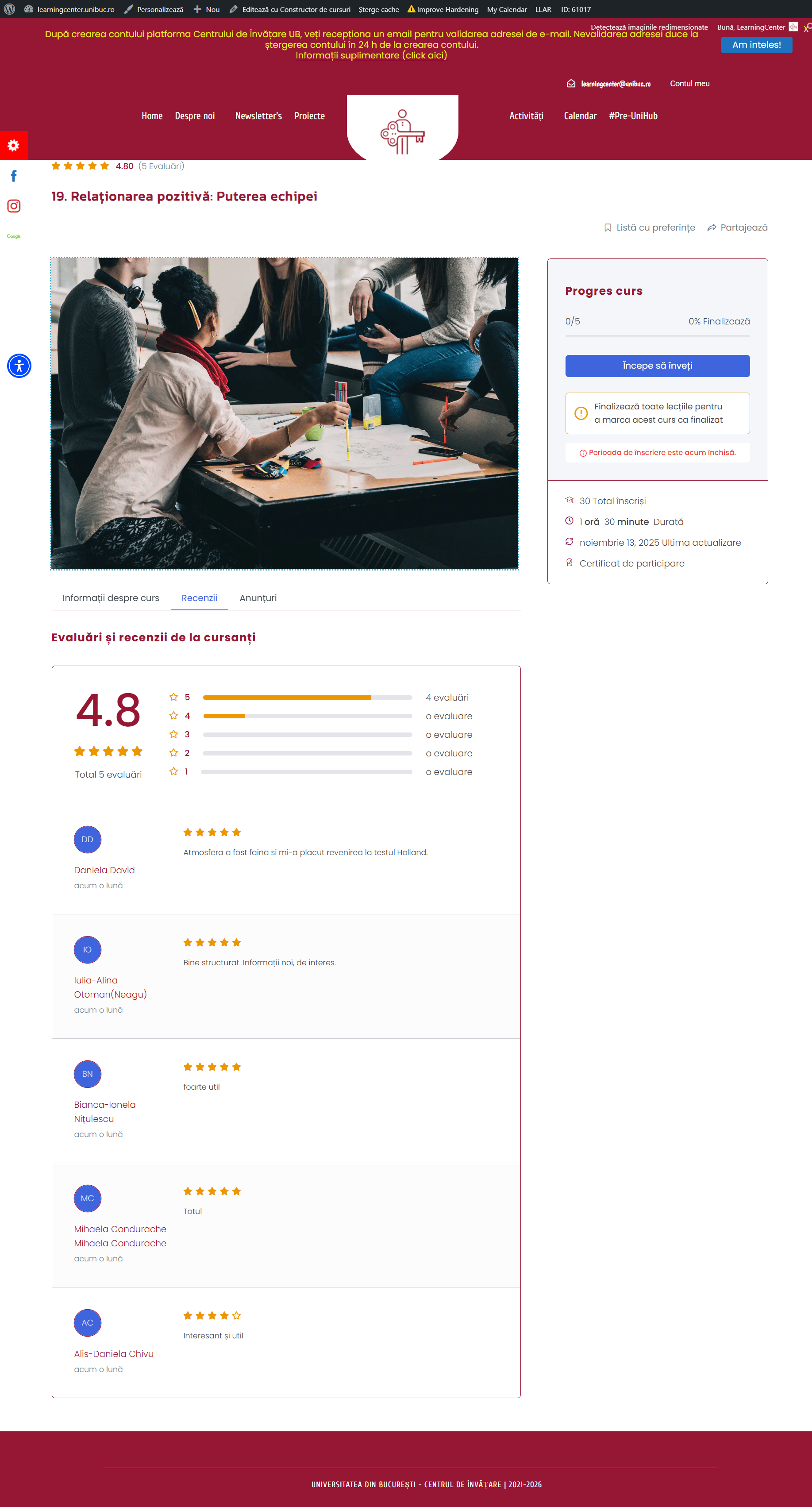 Atelierul are ca scop principal dezvoltarea unei culturi a relaționării pozitive în cadrul echipei.